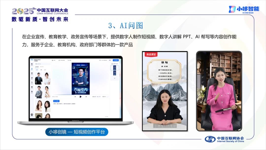 AI问图: AIGC创作平台,支持数字人短视频制作、PPT讲解、AI帮写等,赋能企业、教育、政务宣传。