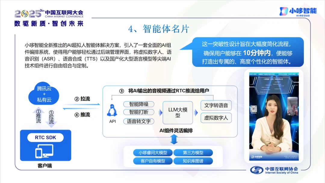 智能体名片: 革命性超拟人智能体方案!用户可10分钟内灵活组合数字人、语音识别/合成、大模型等,快速打造专属智能助手。